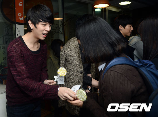 제국의 아이들 문준영이 팬들에게 사탕을 나눠주고 있다.