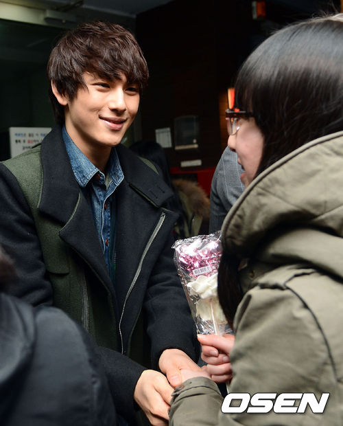 제국의 아이들 시완이 여성팬과 악수를 나누고 있다.