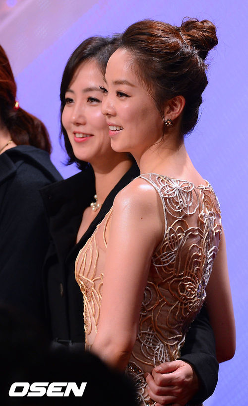 14일 오후 서울 여의도 KBS 신관 TV 공개홀에서 진행된 제25회 한국PD대상 시상식에서 출연자상은 수상한 정세진 아나운서와 사회를 맡은 박은영 아나운서가 포즈를 취하고 있다
