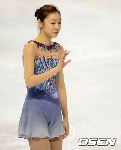 피겨여왕 김연아가 14일 오후(이하 한국시간) 캐나다 온타리오주 런던 버드와이저 가든스에서 열린 2013 국제빙상경기연맹(ISU) 피겨스케이팅 세계선수권대회 여자 싱글 쇼트프로그램(SP) 경기에 앞서 드레스 리허설을 마치고 팬들에게 인사를 하고 있다.