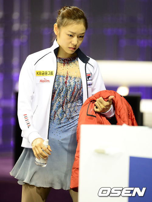 피겨여왕 김연아가 14일 오후(이하 한국시간) 캐나다 온타리오주 런던 버드와이저 가든스에서 열린 2013 국제빙상경기연맹(ISU) 피겨스케이팅 세계선수권대회 여자 싱글 쇼트프로그램(SP) 경기에 앞서 드레스 리허설을 하기 위해 입장하고 있다.