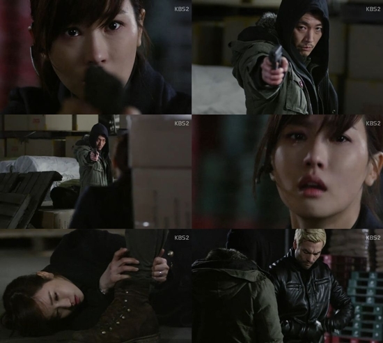 ‘아이리스∥’의 이다해가 장혁의 총을 맞고 쓰러졌다.