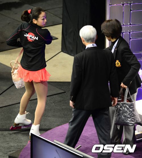 피겨여왕 김연아가 15일 새벽(이하 한국시간) 캐나다 온타리오주 런던 버드와이저 가든스에서 열린 2013 국제빙상경기연맹(ISU) 피겨스케이팅 세계선수권대회 여자 싱글 쇼트프로그램(SP)에서 일본의 아사다 마오가 낮은 점수에 실망하고 있다.