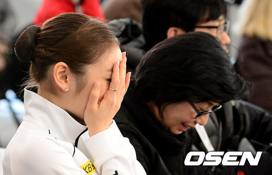 경기후 쇼트 1위를 차지한 김연아가 프리 순서 추첨에서 마지막인 24번을 뽑고 웃음을 터뜨리고 있다./jpnews@osen.co.kr