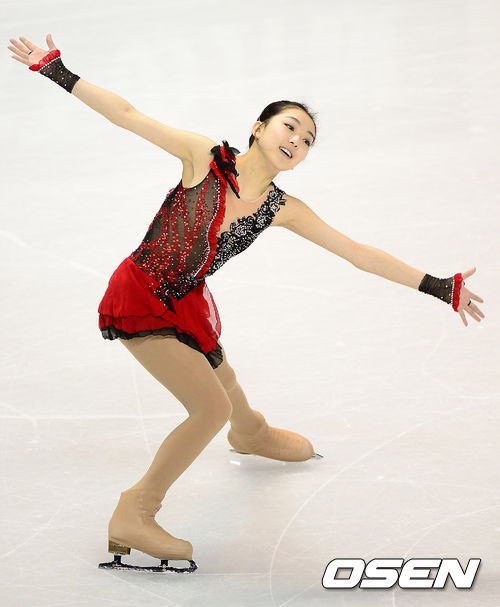 김연아는 15일(이하 한국시간) 캐나다 온타리오주 런던의 버드와이저 가든스에서 열린 2013 국제빙상경기연맹(ISU) 피겨스케이팅 세계선수권대회 여자 싱글 쇼트프로그램(SP) 경기서 기술점수(TES) 36.79점 예술점수(PCS) 33.18점을 받아 총점 69.97점을 기록, 1위에 올랐다. 2위 카롤리나 코스트너(이탈리아, 66.86점)와는 3.11점차. 아사다 마오(일본)는 62.10점으로 6위에 그쳤다.