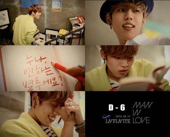 컴백일까지 인피니트 멤버들이 한 명씩 돌아가며 ‘사랑에 빠진 그 순간’을 그려내는 이번 프로모션에서 동우는 사랑 고백을 연습하는 남자의 모습을 풋풋하게 담아냈다.