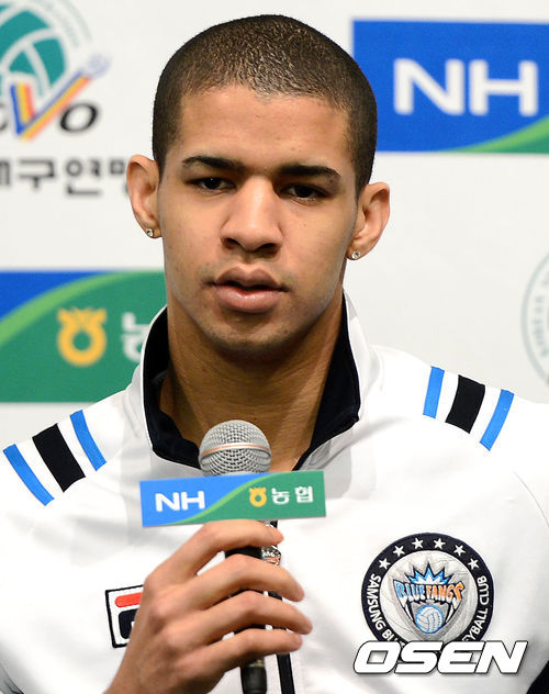 15일 오전 서울 청담동 호텔리베라 베르사유홀에서 열린 2012-2013 NH농협 V리그 포스트시즌 미디어데이에서 삼성화재 레오가 취재진의 질문에 답을 하고 있다.