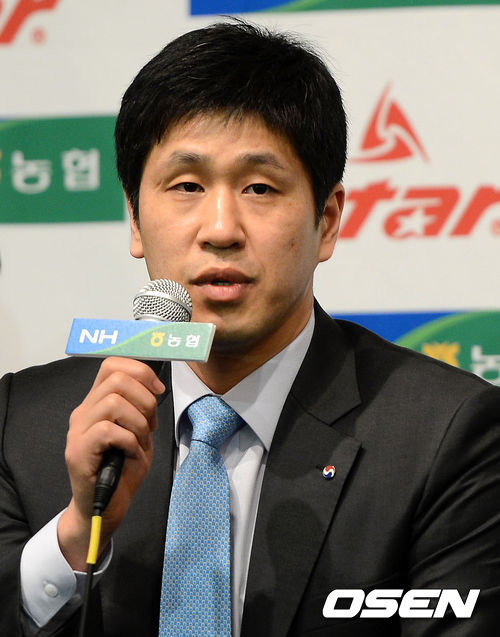 15일 오전 서울 청담동 호텔리베라 베르사유홀에서 열린 2012-2013 NH농협 V리그 포스트시즌 미디어데이에서 대한항공 김종민 감독대행이 취재진의 질문에 답을 하고 있다.