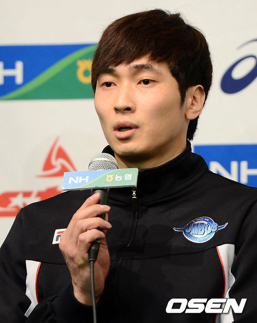 15일 오전 서울 청담동 호텔리베라 베르사유홀에서 열린 2012-2013 NH농협 V리그 포스트시즌 미디어데이에서 대한항공 주장 김학민이 취재진의 질문에 답을 하고 있다.