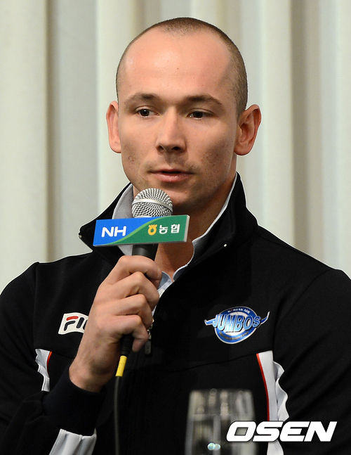 15일 오전 서울 청담동 호텔리베라 베르사유홀에서 열린 2012-2013 NH농협 V리그 포스트시즌 미디어데이에서 대한항공 외국인 선수 마틴이 취재진의 질문에 답을 하고 있다.