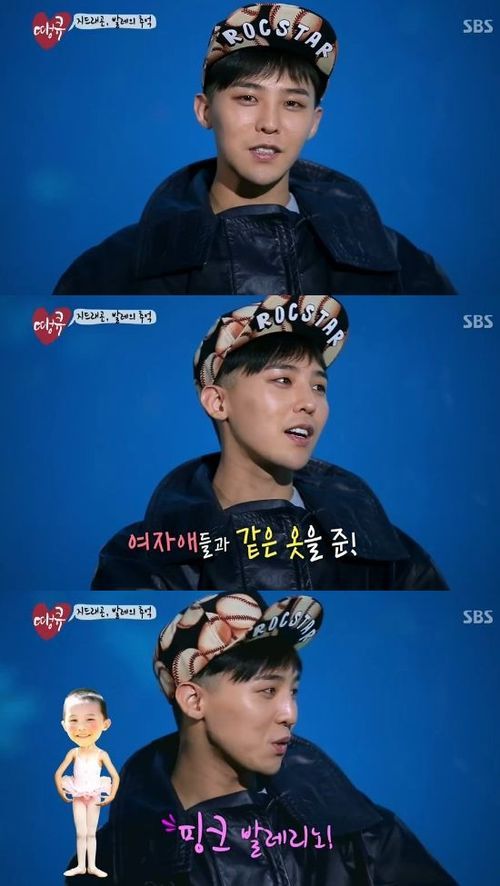 이어 지드래곤은 “엄마가 발레학원을 보내셨다. 저도 남자인지라”라며 수줍은 미소를 지었다. 그는 “여자 아이들과 같은 옷을 입었다. 핑크색 옷을 입은 모습이 너무 부끄러웠다”고 밝혀 웃음을 자아냈다.