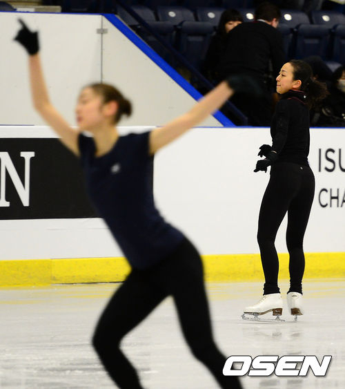 김연아와 아사다 마오가 연습을 하고 있다.