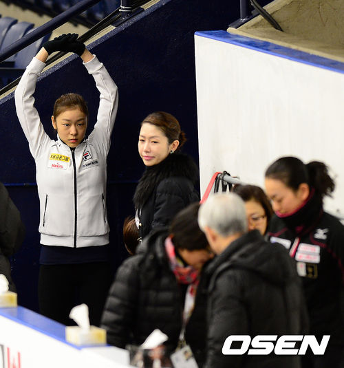 김연아, 아사다 마오가 프리 연습 준비를 하고 있다.