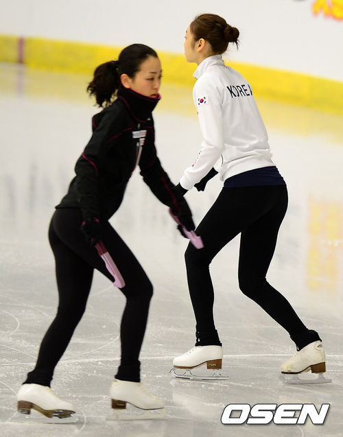 김연아, 아사다 마오가 프리 연습을 하고 있다.