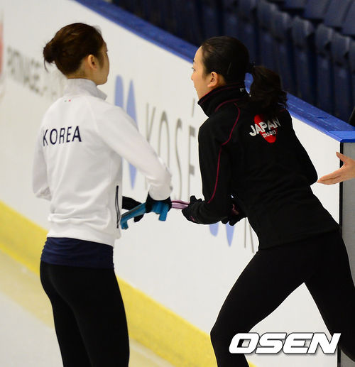 김연아, 아사다 마오가 프리 연습을 하고 있다.