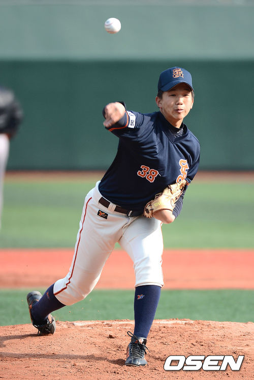16일 오전 서울 목동구장에서 열린 '2013 고교야구 주말리그' 개막전 휘문고와 성남고의 경기, 1회초 성남고 안현석이 역투하고 있다.