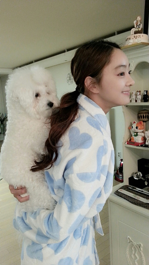 공개된 사진에는 하얀 털을 가진 귀여운 애완견을 업고 SBS 수목드라마 ‘그 겨울, 바람이 분다’를 시청 중인 서효림의 모습이 담겨있다. 특히 서효림은 애완견을 업고 환한 미소를 지으며 ‘엄마 포스’를 발산하고 있어 웃음을 자아낸다.