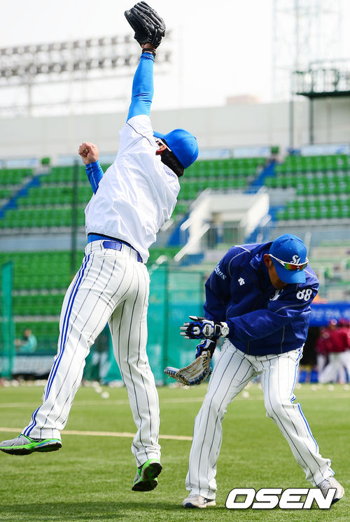 16일 대구 시민운동장에서 ‘2013 한국야쿠르트 세븐 프로야구’ 삼성 라이온즈와 넥센 히어로즈가 시범경기를 가질 예정인 가운데 양 팀이 훈련하는 시간을 가졌다.