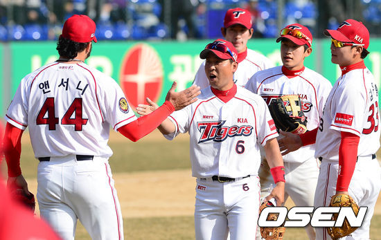 KIA는 16일 광주구장에서 벌어진 두산과의 시범경기에서 7회 터진 안치홍의 역전 결승 좌월 장외 스리런을 앞세워 3-2로 역전승했다. KIA는 이날 승리로 시범경기 전적 4승 무패(16일 현재)를 기록하며 전날(15일)까지 공동 선두를 달리던 두산을 끌어내리고 단독 선두로 자리했다.