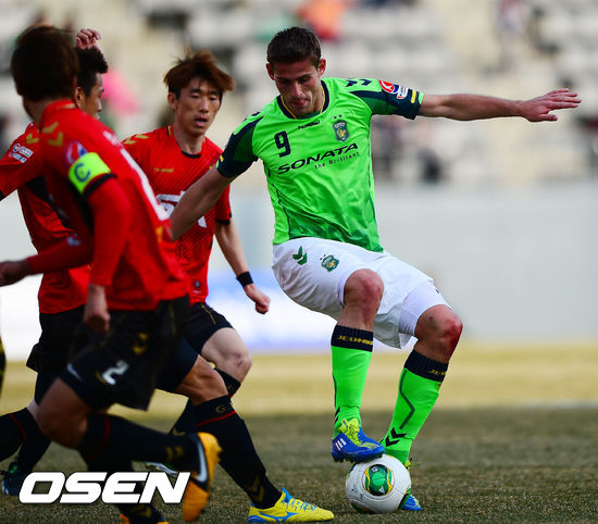 16일 오후 경상남도 창원시 성산구 창원축구센터에서 열린 경남 FC와 전북 현대의 현대오일뱅크 K리그 클래식 2013 경기에서 전반 전북 케빈이 돌파를 시도하고 있다.