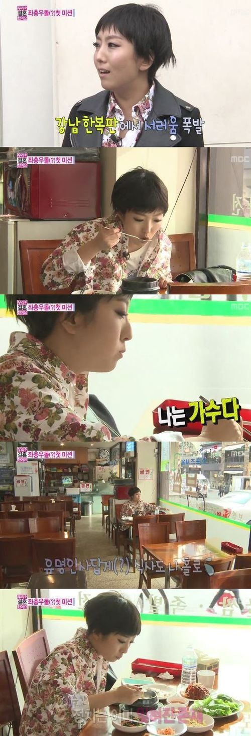 가수 정인이 삼선 슬리퍼를 신고 홀로 푸짐한 보쌈먹기 삼매경에 빠져 웃음을 자아냈다.