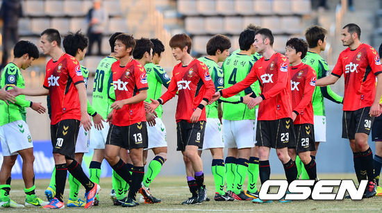경기를 마치고 양 팀 선수들이 악수를 나누고 있다./ rumi@osen.co.kr