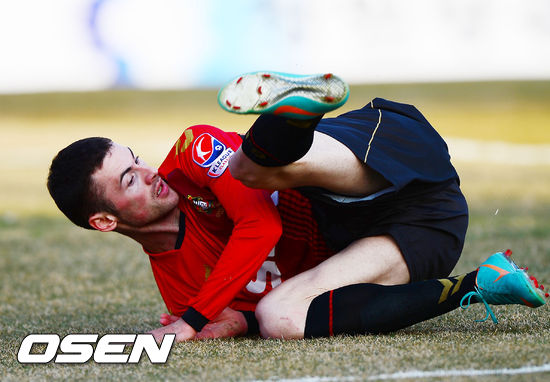 후반 경남 부발로가 공격 도중 균형을 잃고 그라운드를 구르고 있다./ rumi@osen.co.kr