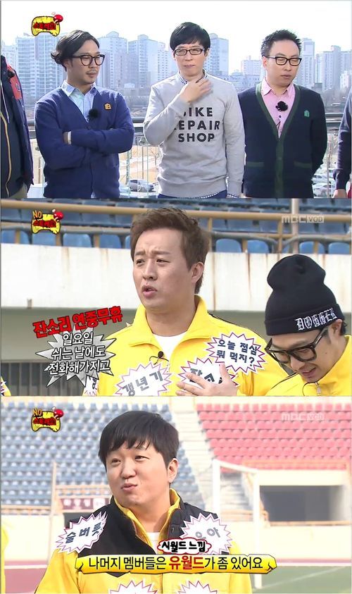 그는 스트레스의 근원을 찾는 과정에서 유재석의 잔소리를 꼽았다. 유재석에게 전화가 걸려오면 가슴이 내려앉고, 옆에 그가 있다고 하면 노홍철에게 용무가 있어도 전화를 끊는다는 다소 과장된 고백을 했다. 여기에 정형돈이 “여자들은 시월드에 시달린다는데 우리는 유월드에 시달린다”고 덧붙이면서 재미를 더했다.