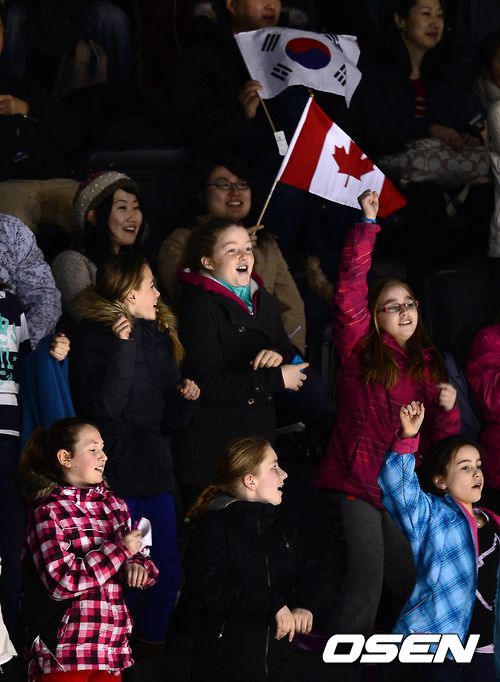 피겨여왕 김연아가 17일 (이하 한국시간) 캐나다 온타리오주 런던 버드와이저 가든스에서 열리는 2013 국제빙상경기연맹(ISU) 피겨스케이팅 세계선수권대회 여자 싱글 프리 스케이팅 경기가 벌어지기 전 싸이의 강남 스타일이 울려 펴지자 캐나다 관중들이 말춤을 추고 있다.