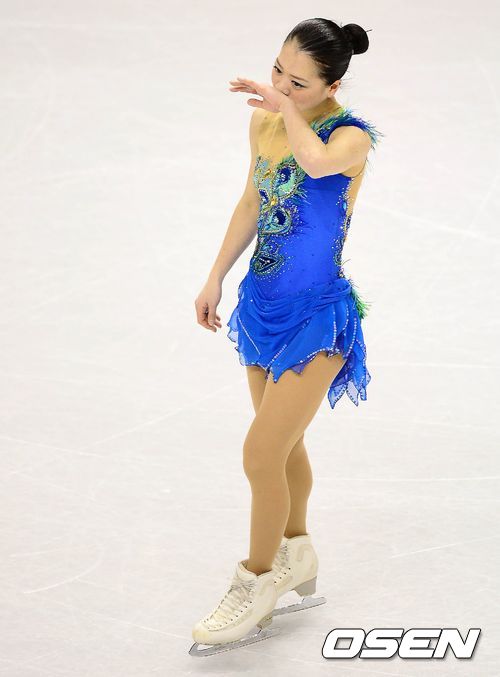 피겨여왕 김연아가 17일 (이하 한국시간) 캐나다 온타리오주 런던 버드와이저 가든스에서 열리는 2013 국제빙상경기연맹(ISU) 피겨스케이팅 세계선수권대회 여자 싱글 프리 스케이팅 경기에서 일본의 스즈키 아키코가 연기를 마치고 아쉬운 표정을 짓고 있다.