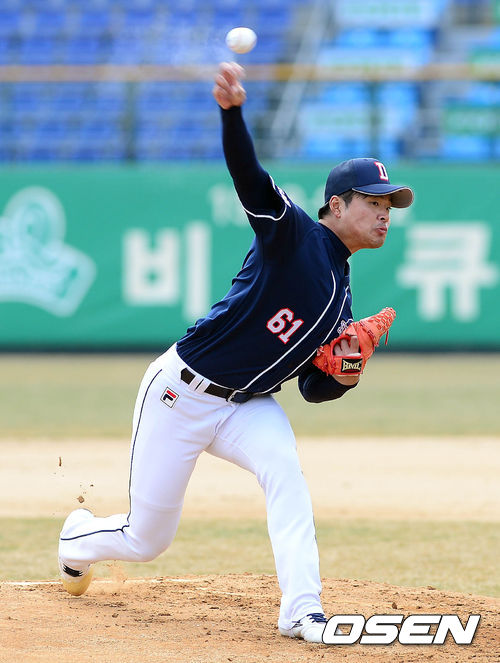 17일 오후 광주구장에서 열린 '2013 한국야쿠르트 세븐 프로야구' KIA 타이거즈와 두산 베어스의 시범경기 두산 선발 서동환이 역투하고 있다.