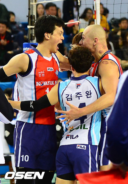 이날 최고의 수훈 갑은 마틴이었다. 마틴은 강력한 스파이크를 휘두르며 43점을 기록하며 현대캐피탈의 벽을 무너뜨렸다. 도한 블로킹으로 4점을 올린 마틴은 트리플 크라운을 작성하기도 했다. 이외에도 김학민이 18점을 올리며 팀 승리에 힘을 보탰다.