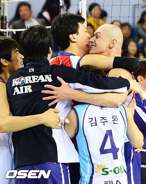 경기를 마치고 대한항공 마틴이 동료들과 기쁨을 나누고 있다. / rumi@osen.co.kr