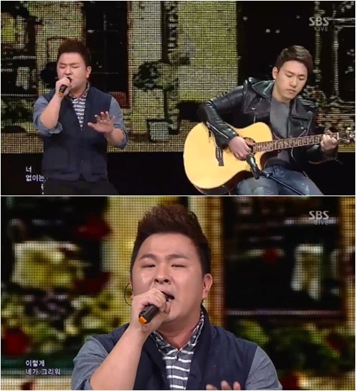 허각은 17일 방송된 SBS '인기가요'에 출연해 차분한 모습으로 '모노드라마'를 열창했다. 허각 특유의 시원하면서도 뛰어난 가창력이 돋보였다.