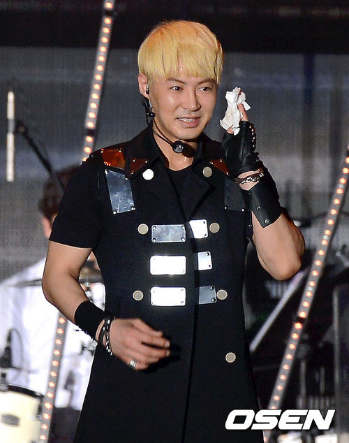 17일 오후 서울 올림픽공원 체조경기장에서 진행된 에서 신화멤버 전진이 땀을 닦고 있다.