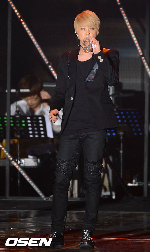 17일 오후 서울 올림픽공원 체조경기장에서 진행된 에서 신화 멤버 신혜성이 물을 마시고 있다.