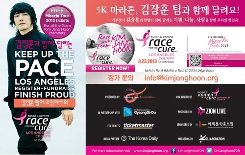 김장훈은 오는 23일 미국 LA에서 열리는 LA핑크리본 도네이션 마라톤 특별레이스에 참여하고 메인콘서트 무대에 오른다.