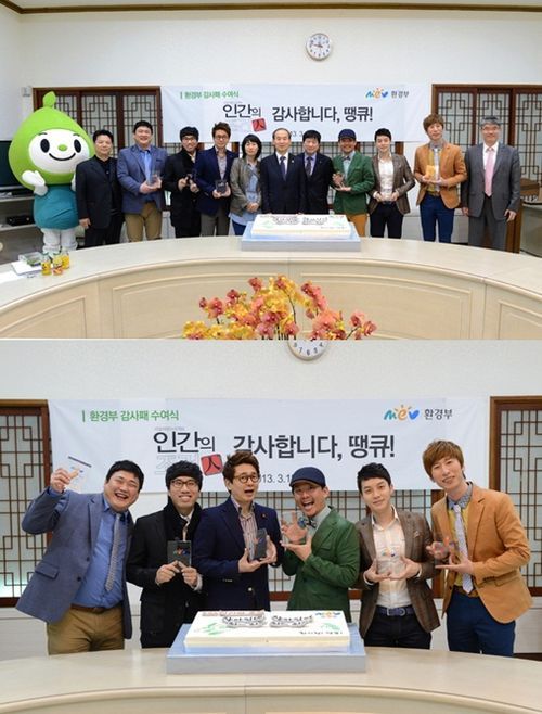 환경부는 18일 오후 KBS 본관에서 ‘인간의 조건’을 제작한 신미진 PD와 개그맨 김준호, 박성호, 김준현, 양상국, 정태호, 허경환 등 출연자 6명에게 감사패를 전달했다.
