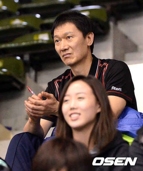 18일 오후 경기 수원실내체육관에서 열린 '2012-2013 NH농협 V-리그' 플레이오프 2차전 현대건설과 GS칼텍스의 경기, 경기장을 찾은 IBK기업은행 이정철 감독이 경기를 바라보고 있다.