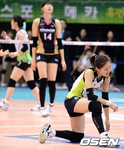 4쿼터 현대건설 선수들이 실점에 아쉬워 하고 있다. /sunday@osen.co.kr