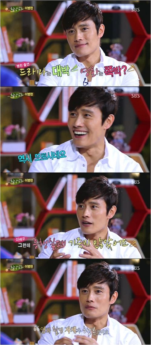 이병헌은 18일 방송된 SBS 토크쇼 ‘힐링캠프, 기쁘지 아니한가’에서 데뷔 초기 드라마 인기에 비해 영화 흥행을 하지 못한 것에 대해 “처음 영화에 데뷔하고 4편 연속 기대에 미치지 못했다”고 인정했다.