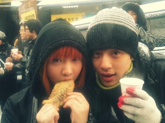공개된 사진에는 검은 후드티셔츠의 모자를 뒤집어쓴 공민지와 니트 모자와 편안한 옷차림으로 수수한 매력을 드러내는 세븐의 모습이 담겨있다.