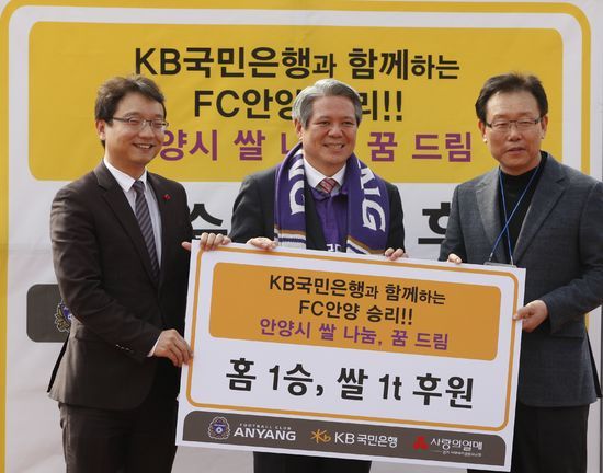 2013년 K리그 챌린지에 참가하는 FC안양과 후원사인 KB국민은행은 홈 경기시 승리시마다 쌀 1톤을 안양시 복지시설 및 소외계층에 지원하기로 결정했다.