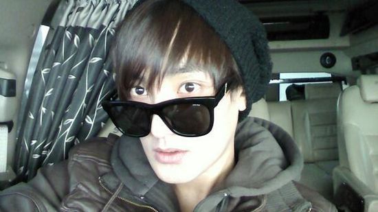 사진 속 강타는 차 안에서 포즈를 취하고 있다. 머리에 쓰고 있는 털모자와 코 끝에 걸친 검정색의 선글라스가 귀여움을 자아낸다.