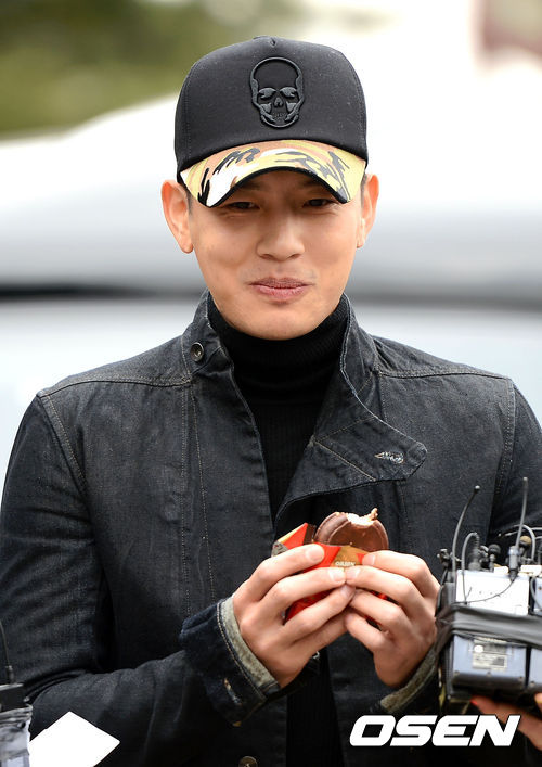 가수 세븐이 19일 오후 경기도 의정부 306보충대 입소에 앞서 리포터가 건넨 초콜릿 파이를 먹고 있다.