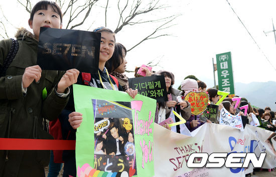 모여든 팬들은 '세븐의 빈자리는 우리가 지킬에요', '기다릴게 돌아와줘', '사랑해요 세븐' 등의 플래카드를 들고 입소하는 세븐을 배웅했다.