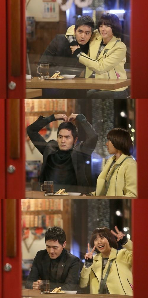 배우 이진욱이 날리는 무뚝뚝한 하트에 조윤희가 싱글벙글하는 사진이 공개됐다.