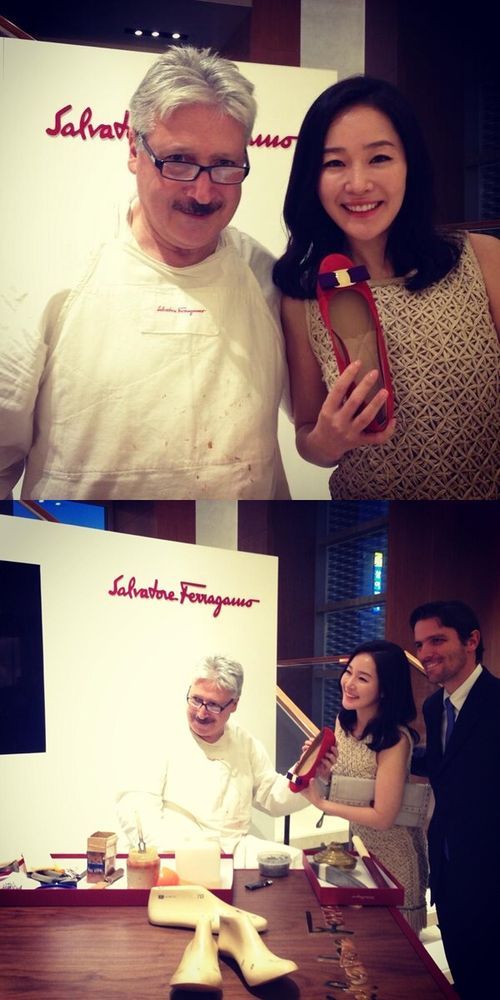 엄지원은 19일 자신의 트위터에 "페라가모 장인이 직접 만들어주신 슈즈!", "제임스 페라가모와 함께"라는 글과 함께 두 장의 사진을 올렸다.
