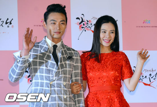 19일 오후 서울 메가박스 동대문점에서 열린 JTBC '궁중잔혹사-꽃들의 전쟁' 제작발표회에서 전태수와 김현주가 포토타임을 갖고 있다.