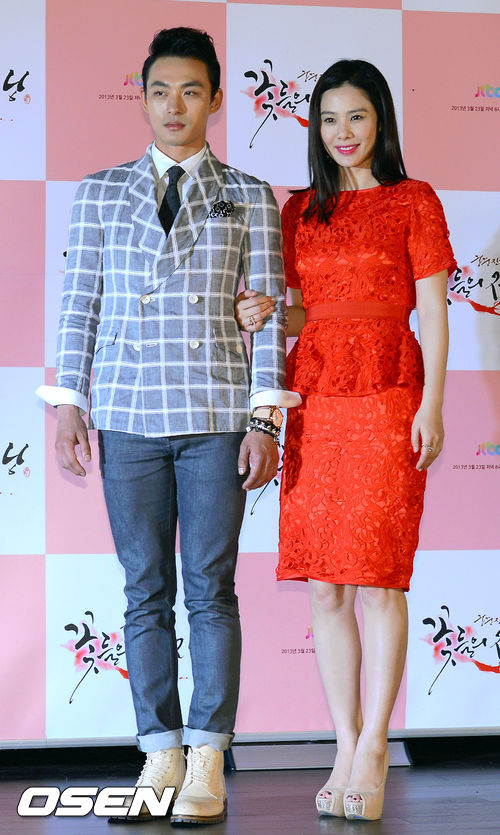 19일 오후 서울 메가박스 동대문점에서 열린 JTBC '궁중잔혹사-꽃들의 전쟁' 제작발표회에서 전태수와 김현주가 포토타임을 갖고 있다.